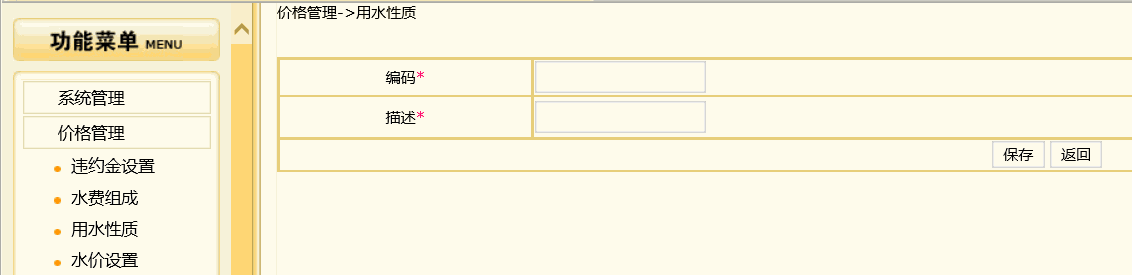 1、 新增用水性质(参照例子:居民生活用水2):价格管理==》用水性质==》增加