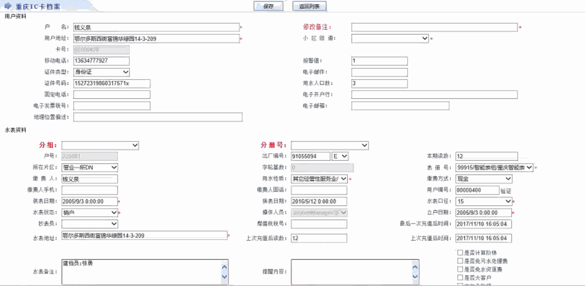 3.1智能卡水表档案管理